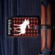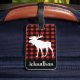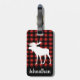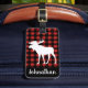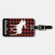 Rustikaler Büffel-Karo kariert in Rotem und in Schwarzem mit einem weißen Elch-Silhouette-Gepäckumbau mit personalisiertem Namen im Skript.