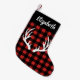Rustikaler Büffel-Karo karierter WeihnachtsStrumpf mit klarer weißer Rotwildgeweih-Silhouette und Name im Skript.