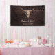 Rustikaler Bullenskull Western Cowboy Hochzeitsbanner Zeichen. Personalisierte braune Textur Bauerngeschenk. Alte wilde Westen Vintage antike inspiriert. Coole, trendige, moderne Bauerndekoration Empfang Dekoration. Personalisieren Sie Ihr Skript. Bildrecht Marg Seregelyi Fotografie.