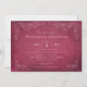 Diese formale Einladungskarte mit einem Vintagen Weinetikett-Design. Rustikale, von Hand gezeichnet Skizzen von Blätter der Weinrebe bilden den Rahmen für die wichtigsten Details. Auf der Rückseite wird ein einfaches geblüht Design mit dem Ereignisdatum angezeigt. Reich dunkelbordeauxrot und rosa.