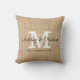 Rustikaler Burlap White Monogram Wedding Keepake Kissen