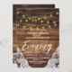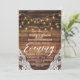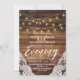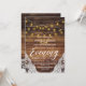 Elegantes, elegantes und rustikales Land, das an der Saitenleuchte hängt, weiße Spitzen auf Holzplanken, Abend Hochzeitsempfang Einladungen. Dieses klassische und raffinierte Design ist perfekt für das trendige und stilvolle Ehepaar. Personalisieren Sie Ihre eigene Nachricht auf der Vorderseite sowie ein individuelles Monogramm auf der Rückseite. Das gesamte Foto-Druckdesign.