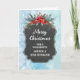 Frohe Weihnachten für den Cousin und ihre Ehemannskarte mit rustikalem Kalkbrettmuster und winterlichem Laub mit Poinsettias.