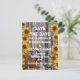 Elegante Western wilden Westcowboy hellgelbe Sonnenblumen Blumenblumen Blume, hübsche moderne moderne Western alten Holz texturierte Scheunentür, natürliche rustikale Bauernhof oder Ranch-Stil Frühjahr oder Sommerhochzeit speichern das Datum, leicht personalisiert mit den Braut und Grooms Namen zu den Text-Vorlagen, um Ihre eigenen weiblichen mädchenartigen, mädchen Sie den Knoten Save the Date für Ihre besondere Ehe und Feiern. Besuchen Sie den PERSONALISIERT_ WEDDINGS STORE für die Abstimmung von Hochzeitsfeiern. MÜSSEN Sie den Text und den Schriftart anpassen.