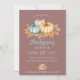 Rustikale Erntedank-Einladungen mit Aquarellfarben Herbstblumenkürbis Kunst auf violett Kupfer Rose Hintergrund mit gelbem und blauem Text.