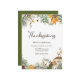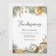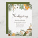 Rustikale und einfache Erntedank Dinner Einladung, mit einem einfachen Herbst-Winterwald-Arrangement auf der Oberseite und Unterseite der Einladung mit wilden Blume, erdigen Pilzen, Kiefern Blätter, pinecone, Herbstlaub und eine lebhafte Biene. Individuell anpassbare Einladungsdetails für Erntedank.