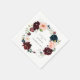 Rustikaler Fall Blumenkranz, personalisierte Papierservietten. Marineblau, bordeauxfarbene und rot-blaue Blume mit zarter Vegetation und Holzkohle skizzierten künstlerische Blumenakzente. Vorlage stellt zwei Leerzeichen für Namen und Ereignisdatum bereit.