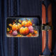 Goldenes rustikales Kürbisgemälde umgeben von pulsierenden Herbstblättern.