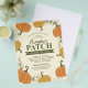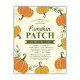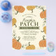 Mit diesem rustikalen Flyer, der einen anschaulichen Kürbiskürbis und einen Rahmen für Blätter bietet, können Sie Ihren Kürbispflaster bewundern.