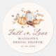 Feiern Sie die Saison und die zukünftige Braut mit diesen charmanten Herbst-Brautparty-Aufklebern, die den Satz "Fall in Liebe" in eleganter brauner Handschrift enthalten. Diese Aufkleber sind mit Aquarellkürbis, Herbstfloralen und warmem erdfarbenem Blattwerk auf weichem Cremeuntergrund gestaltet und zeigen den Namen der Braut und das Duschdatum für eine personalisierte Touch. Ideal für die Abdichtung von Umschlägen, die Verzierung von Gefälligkeitssäcken oder die Verstärkung der gestalterischen Dekoration. Ideal für Herbstduschen, Babyduschen oder gemütliche saisonale Feste.