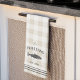 Mit diesem niedlichen personalisierten Handtuch mit Familienname oder Hausnamen und Jahr, das in einer reichen kohlegrauen Schrift mit einer Fischillustrierung auf einem tonal karierten Hintergrund aufgebaut ist, können Sie Ihre Küche individuell gestalten.