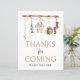 Fügen Sie Ihrer Babydusche eine Touch rustikalen Charme hinzu mit diesem schönen "Danke fürs Kommen" Schild! Dieses Schild wurde mit Aquarellbildern für Angelgeräte, Babyüberzüge und Stiefel gestaltet und eignet sich perfekt für eine kleine Babydusche zum Thema Fischer. Verwenden Sie dieses Schild, das den kohärenten Stil Ihrer Veranstaltungsdekoration unterstreicht.