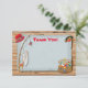Rustikales Angeln Dankeschön Karte mit Angeln, Netz, Angelschachtel, Hut und einem farbenfrohen Fisch. Altes Papier und Holzputz. Handgezeichnete Illustration von McBooboos. Matching-Einladung verfügbar.
