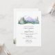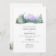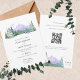 Dieses elegante Ganze in einer Hochzeitseinladung besticht durch eine Aquarellwald- und Bergkulisse, minimalistische Details und Kalligrafietext. Auf der Rückseite befinden sich zusätzliche Details und ein QR-Code, der die Karten des Gehäuses optional macht. Es ist klassisch, aber modern und sicher, die Szene für Ihre Berggipfel Hochzeit in Urlaubsort Set.