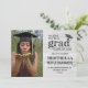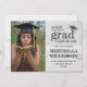 Einfache, stilvolle, rustikale Foto Abschluss Einladung, mit dem Hintergrund von weißen Holzplanken und Typografie. Die Hauptüberschrift lautet "SO GLAD FOR This GRAD" auf der rechten Seite, und es gibt ein anpassbares Foto auf dem links. Fügen Sie Ihren Namen und Ihre Details hinzu, um den Platzhalter-Text auf der Vorder- und Rückseite zu ersetzen.