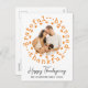 Diese rustikale Erntedank-Karte hat einen weißen Hintergrund und ein kreisförmiges Foto in einem Kranz aus Worten: dankbar, gesegnet, dankbar, und einige niedliche Erntedank-Symbole wie Kürbiskuchen und Truthahn. Der Rahmen hat eine hellorange Farbe, die auf der Rückseite der Karte passt. Unter dem Foto gibt es Erntedank-Grüße, einen Familiennamen und ein Jahr. Der Text ist in einem schwarz eleganten Drehbuch / rustikalen Schriftart. Sie können ganz einfach Ihre eigene Karte erstellen, indem Sie auf diese Schaltfläche Vorlage personalisieren klicken und die Details für sich selbst ändern. Ich wünsche Ihnen ein glückliches Erntedankfest!