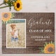 Rustikal Gelbe Sonnenblume Wood Abschluss Jigsaw Puzzle. Sonnenblumen bringen Freude und Abschluss ist eine fröhliche Zeit! Feiern Sie mit diesem einzigartigen Puzzle den Erfolg Ihres Graduates. Es macht einen besonderen Sake für Familie und Freunde. Dieses auffällige Design ist mit gelben Sonnenblumen und grünem Blattwerk auf einem Stallholzboden dekoriert. Passen Sie es mit Ihrem Foto an und fügen Sie den Namen und das Jahr des Abschlusses des Absolventen hinzu. Weil wir unsere eigenen Kunstwerke erstellen, werden Sie diese Sonnenblumen und Blätter von anderen Designern nicht finden. Original Wasserfarbe © Michele Davies.