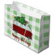 Ein herrliches Weihnachtsfest mit diesen wunderschönen großen Geschenktaschen. Ein hübsch niedlicher Camper mit einem Weihnachtsbaumdesign schmückt die beiden Seiten mit einem rustikalen, weißen und hellgrünen karierten Muster. Viel Spaß!