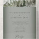 ERHÄLTLICH MIT ODER OHNE QR CODE ODER MIT ODER OHNE AUSWAHL DES ABENDS. Diese Hochzeitseinladung zeigt eine ruhige, schmucke Bergkulisse, die vor einem reichen Hintergrund tiefgrüner Wälder anmutig dargestellt wird. Ein weißes Weichzeichner-Overlay wird künstlerisch eingesetzt und verleiht dem Design ein Gefühl von Eleganz und Weichheit. Diese bezaubernde Kombination von Elementen schafft eine faszinierende Einladung, die die Schönheit der Natur und die Sets die Bühne für eine zauberhafte Hochzeitsfeier einfängt. Erstellt von der einfachen Farmhouse Press.