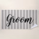 Einfaches, stylisches, graues und Elfenbein gestreiftes Strandtuch, personalisiert mit großen Groom Schriftzeichen, oder anpassen Sie es mit Ihrem Namen oder anderen Texten. Verwenden Sie die Designtools, um die Schriftartes und Farben des Textes zu ändern oder um Ihre eigenen Fotos zu erstellen, um ein personalisiertes Strandtuch für Ihre Hochzeitsreise oder ein einzigartiges Hochzeitsgeschenk zu erstellen.