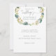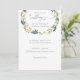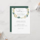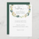 Rustikales Aquarell- und Goldgrün-Blätter verwöhnen Hochzeitseinladungen mit weißen Blume mit elegantem Kalligrafietext, der mit einem modernen Schriftart vermischt wird. Die Vorlage ist einfach zu personalisieren mit Ihren eigenen Informationen. Die Rückseite der Karte ist dunkel, grün und passt zu den Blätter im Kranz.
