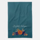 Rustikaler Herbst Orange Navy Blauer Flora Geschirrtuch