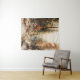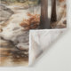 Eine Aquarellwiedergabe von 2 rustikalen Hütten im Wald im Herbst.