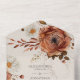 Mit dieser exquisiten All-in-One-Hochzeitseinladung mit einem zarten Blumendesign in den warmen Herbsttönen. Diese wunderschön gestaltete Einladung ist ideal für Paare, die eine Touch von Eleganz und Romantik für ihre Hochzeit im Herbst-Feier suchen. Die All-in-One Hochzeitseinladungen sind schön und praktisch, indem sie die Hochzeitseinladung mit einer leicht zu entfernenden perforierten UAWG-Postkarte kombinieren. Sie sind auch schnell und einfach für den Versand vorbereitet. Einfach auf die Einladung richten, die Rückenklappe und das Siegel mit den beiliegenden Klarsichtstickern falten. Sobald Ihre Gäste die voradressierte Einladung erhalten, reißen sie einfach die perforierte RSVP-Karte ab und lassen sie in der E-Mail ablegen. Der QR-Code erlaubt es Ihren Gästen, einfach auf Ihre Hochzeitswebsite zuzugreifen, um Informationen zu erhalten, wie zum Beispiel Empfang und Abendessen.