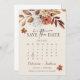 Diese elegante Save the Date-Karte besticht durch ein rustikales Kalenderdesign mit verbrannten Orange- und Terrakotta-Aquarellblumen, botanischen boho Garden-Rose und bordeauxroten Dahlien. Ideal für eine Hochzeit im Herbst mit modernem böhmischen Stil und handgeschriebenen Akzenten der Kalligraphie.