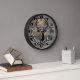 Vintages Hirsch mit Laurel Blätter auf alten Holzkarten Uhr. Herrlich, wie das Hirschbild in die Körner eingebettet ist.