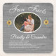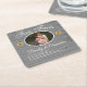 Rustikaler Hochzeitsspass Fakten über Braut und Bräutigam, Sonnenblumen Graues Holz Design Teil des Aquamarinen Barnholz und Sonnenblumen Hochzeitsfeier Anzug. Untersetzer