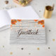 Rustikales graues Holz "Fall in Liebe" String Lights, Gold Glitzern & Herbstlaub Saisonalheiratsbuch.
