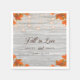 Rustikales graues Holz "Fall in Liebe" String Lights, Gold Glitzern & Herbstlaub Saisonale Hochzeit Napkins.