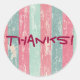 Ein Aufkleber, der sich bedankt! in einem coolen funky Schriftart. Der Hintergrund ist eine rosa und grüne rustikale Holzzaun Grunge Textur.