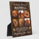 Personalisierte Hunde-Foto-Plakette mit rustikalem Holzhintergrund, 6 wertvolle Bilder Ihres geliebten Hauses, Goldherz-Pfoten & Glitzer, der Text "in liebevoller Erinnerung an", Ihr Hundename, Geburtsdatum/Todesdatum, und das Beileid zitieren "Ihre Gegenwart verpassen wir, Ihre Erinnerung, die wir schätzen, Sie immer lieben, vergessen Sie nie".