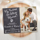Lass deinen besten Hund verkünden deine Hochzeit mit diesem super niedlichen "My Humans Are Getting Married" Hund zum Speichern der Datumskarten. Passen Sie Ihre Wünsche mit Ihrem bevorzugten Foto an und personalisieren Sie Ihre Wünsche mit Namen, Datum und Ort der Hochzeit. Die rustikale Chalkboard-Ankündigung dieser Hundeschließung wird ein Hit mit Ihrer Familie und Freunden. COPYRIGHT © 2020 Judy Burrows, Black Dog Art - Alle Rechte vorbehalten. Rustikaler Hund Hochzeit Ankündigung Datum freihalten Postkarte