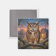 Ein Magnet mit einem auffallenden Uhu, dargestellt in einem reichen, dicken Impasto-Ölgemälde-Stil. Die lebendigen Texturen und der warme Sonnenuntergang-Hintergrund schaffen eine gemütliche, rustikale Atmosphäre, die perfekt für Naturliebhaber und Kunstliebhaber ist.