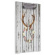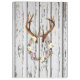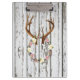 Ein reizend rustikaler Wreath der Blumen, der Zweige und der Beeren, die an den Rotwildgeweihen gegen ein Schalenweiß hängen, malte hölzerne Kabinenwand. Die Blumen und die Geweihe sind ein Watercolorentwurf und das Holz ist ein Vintager Blick Druckeffekt - nicht wirkliches Holz.