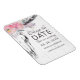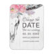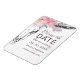 Diese rustikale thematische Hochzeit ändern das Datum der Ankündigung Magnetkarte ist für, wenn das Paar sein Hochzeitstag ändern muss aus welchem Grund auch immer sie haben. Dieses inspirierte Design-Template zeigt handgezeichnete und bemalte Kuhschädel mit einer blütenrosa Wasserfarbenblumenhaube auf einem Hintergrund aus weißem und grauem, verwittertem Holz. Rechts ist Ihre Änderung des Datums Ankündigung in der schwarzen Schrift Typografie. Personalisieren Sie mit Ihren Namen und neuen Hochzeitsdatum. Entworfen von der Künstlerin Susan Coffey.