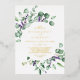 Diese rustikale lavender gold-folie lässige Hochzeitfolie lädt zu einer schlichten und eleganten Hochzeit im Freien ein. Das Blumendesign besticht durch Aquarelleukalyptusfarben und Grünpflanzen mit lila Wildblumen mit luxuriösem Goldfolientext.