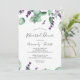 Diese rustikale Lavendel und Eukalyptus Probe Dinner Einladung ist ideal für eine einfache und elegante Hochzeitsfeier im Freien. Das Blumendesign zeichnet sich durch Aquarelleukalyptus-Blätter und Grünpflanzen mit lila Wildblumen aus.