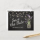 Country chic Save the Date Postkartenvorlage mit rustikalem schwarzen Chalkboard Hintergrund, Saitenleuchten, einem Maurerkirsch mit lila Lavendel-Blume, verpackt in Einbruch mit den Paarinitialen und einem rett unserer Datumsvorlage, die leicht zu personalisieren ist. Für weitere Personalisierungen klicken Sie bitte auf die Schaltfläche "Anpassen", um diese Vorlage zu ändern. Alle Textstile, Farben und Größen können nach Ihren Wünschen angepasst werden. Weitere passende Hochzeitsartikel findest du in meinem Shop www.zazzle.com/special_stationery, aber wenn du nicht findest, was du suchst, kontaktiere mich bitte.