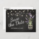 Rustikaler Lavender Mason Jar Lights Save the Date Ankündigungspostkarte