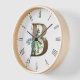 Die gerahmte Wanduhr aus Holz mit rustikalem Holzbuchstaben B Monogramm mit Aquarelleukalyptus und Lavendelverzierung. Ideal für Schlafzimmer oder Wohnzimmer Wände.