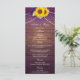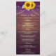 Dieses rustikale lila und gelbe Sonnenblumengeschmack ist perfekt für Ihren besonderen Tag. Das Design umfasst einen Blumenstrauß mit Sonnenblumen, Lavendel, Gänseblumen und Reisen, umgeben von Saitenleuchten auf einem rustikalen Holzboden. Elegante und delikate Schriftart verwöhnen das Menü. Dieses Design ist perfekt für Ihren Garten, rustikal, elegant, Vintag, Land oder Hochzeit in Urlaubsort. Schauen Sie sich die komplette Sammlung auf unserer Seite an, um passende Artikel zu finden, die alle Anforderungen Ihrer Hochzeitssuite erfüllen.
