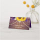 Diese rustikale, lila und gelbe Platzkarte mit blühenden Sonnenblumen ist perfekt für Ihren besonderen Tag. Das Design umfasst einen Blumenstrauß mit Sonnenblumen, Lavendel, Gänseblumen und Reisen, umgeben von Saitenleuchten auf einem rustikalen Holzboden. Elegante und delikate Schriftart schmücken die Platzkarte. Dieses Design ist perfekt für Ihren Garten, rustikal, elegant, Vintag, Land oder Hochzeit in Urlaubsort. Schauen Sie sich die komplette Sammlung auf unserer Seite an, um passende Artikel zu finden, die alle Anforderungen Ihrer Hochzeitssuite erfüllen.