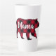 Diese rustikale Latte-Kaffee-Tasse für Mütter verfügt über einen karierten roten und schwarzen Büffelbär auf weißem Hintergrund mit dem Wort "Mama" in der modernen bedrückten Typografie in der Mitte. Entworfen von Künstlern Susan Coffey und Tim Coffey.
