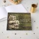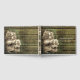 Rustikales Holzheiratsbuch mit Babys atmen. Das Gästebuch ist Teil eines Set zur Hochzeitseinladung