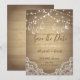 Rustikale Mason Glas. Spitze und Saitenleuchten auf Holz Textur. Schönes Save the Date, dass mit Ihrem Namen angepasst werden kann. Wählen Sie die Schaltfläche "Anpassen", um Stil, Farbe und Größe des Schriftartes zu ändern.