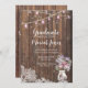 Alt modischer Abschluss Einladung für sie - Rosa Saitenleuchten , Elfenbeinküste und ein Maurerkirsch mit Babyatmen und Süßerbsen in Lavendel und Rosa auf rustikalem Holzfußboden